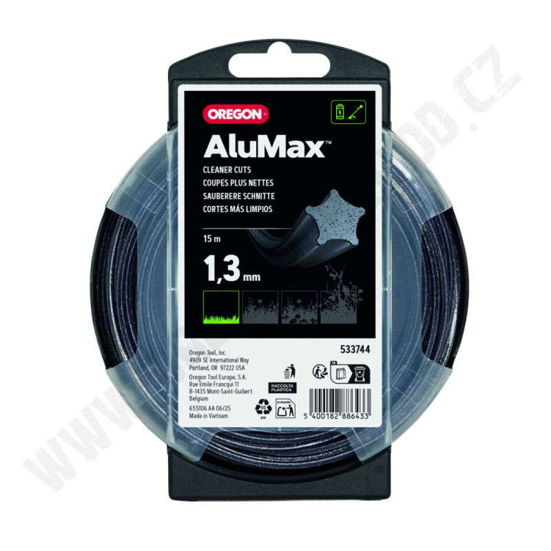 - kvalitní struna Oregon AluMax Starline s hvězdicovým profilem (5 hran) zajišťuje přesný a čistý řez trávníku