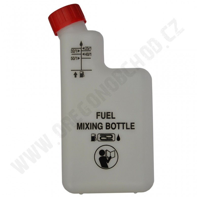 Láhev určená pro jednoduché odměření a smíchání paliva a 2-taktního oleje.
