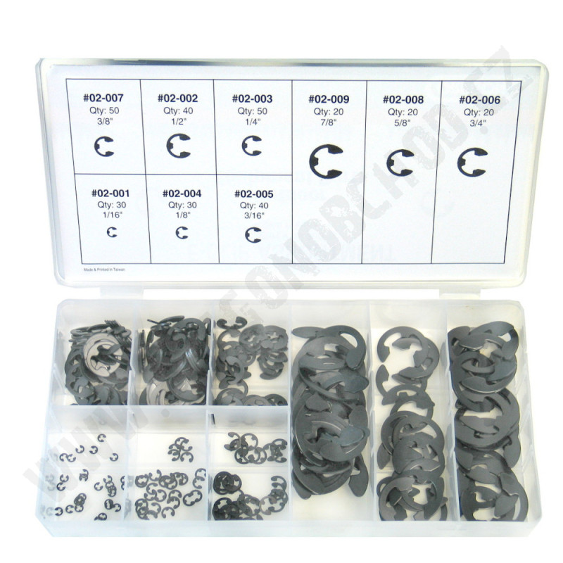 - sada pojistných kroužků typu E-clip určená pro dílenské a servisní použití