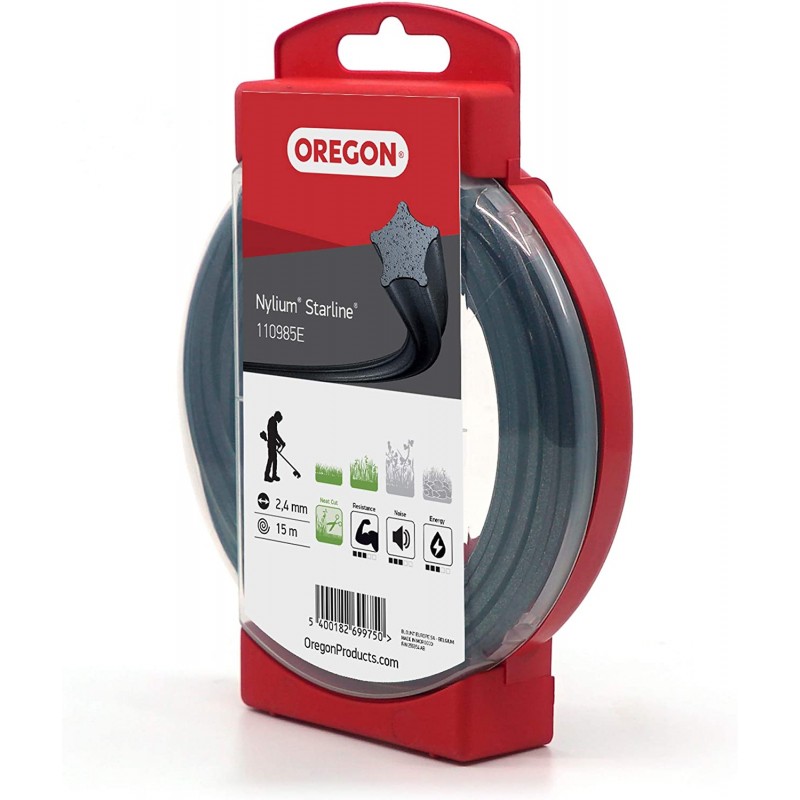 Profesionální žací struna Oregon NYLIUM do křovinořezu vhodná pro sekání nízké trávy, vysoké trávy, plevele a rostlin s tuhými stonky nebo sekání na vlhkých místech, kde je růst trávy intenzivnější a stonky silnější.