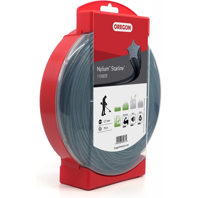 Profesionální žací struna Oregon Nylium do křovinořezu je vhodná pro sekání nízké trávy, vysoké trávy, plevele a rostlin s tuhými stonky nebo sekání na vlhkých místech, kde je růst trávy intenzivnější a stonky silnější.
